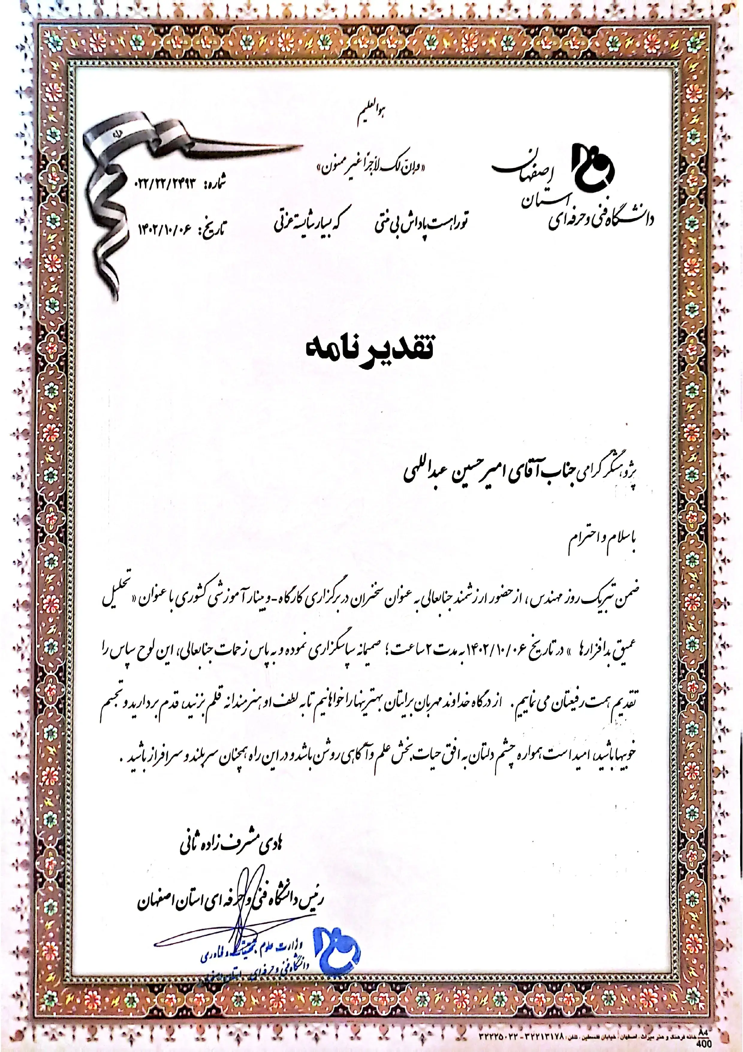 تقدیرنامه ها